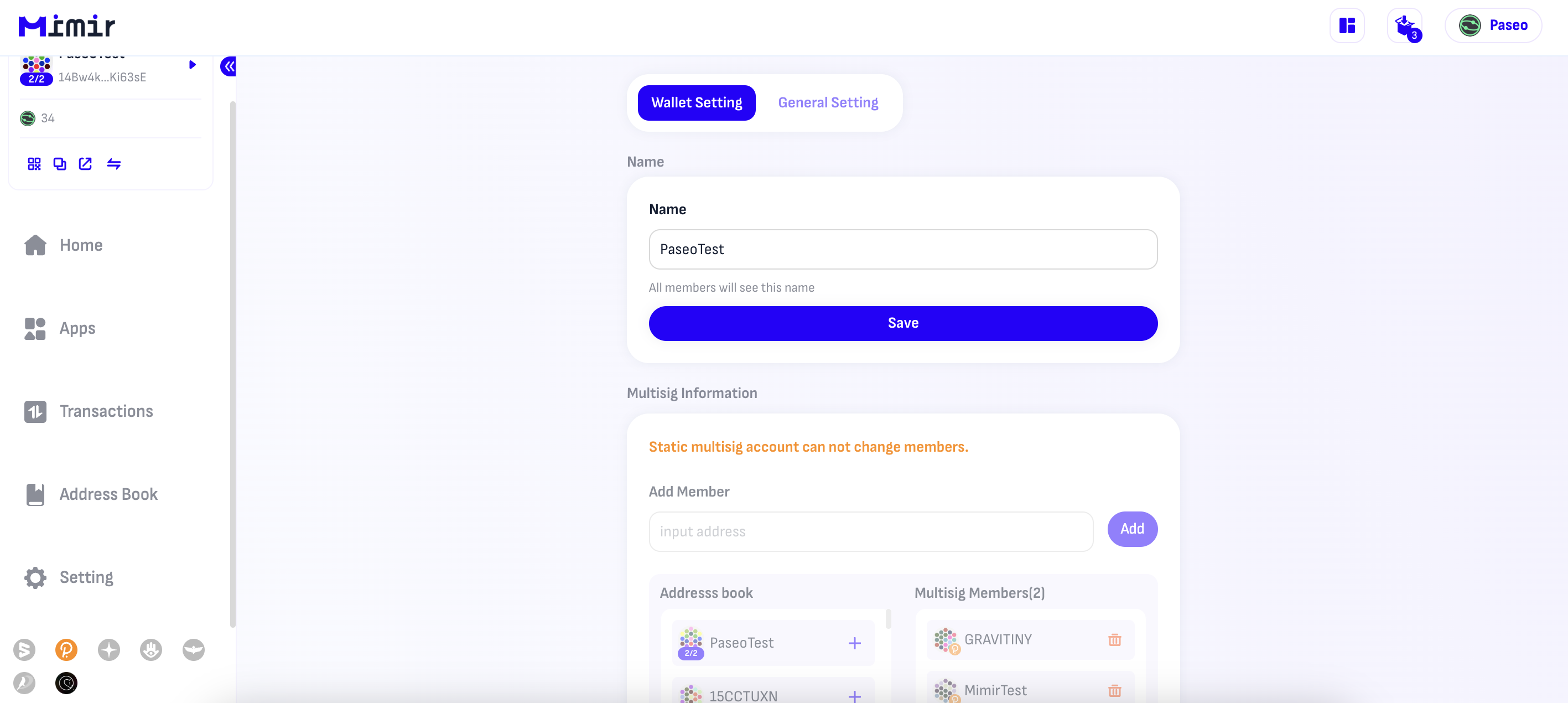 2. Signer: Select the memeber you want to sign the message(It's not a transaction).